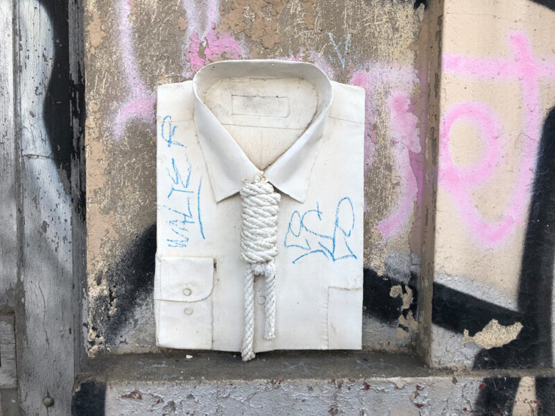 Streetart, Gips-Skulpturen, Hemd mit Seil-Henkersknotenschlinge als Krawatte